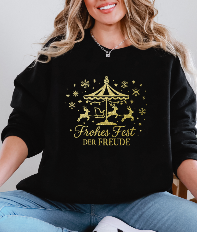 Wähle dein Lieblingsprodukt: T-Shirt, Hoodie, Pullover, Tasse oder Tasche. Gestalte dein Design direkt online – mit Text, Namen, Fotos oder einem unserer vielen Weihnachtsmotive. Rentier, Schneemann, Santa oder Elch – du entscheidest!